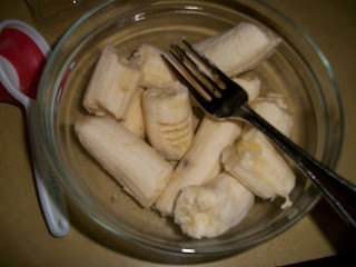 Making this sauce is quite a process, and it required that I stand in and around the kitchen for about 5 hours. While I waited on my simmering concoction, I couldn't help but bake something. Why not right? Since apparently my husband has not been eating his daily banana in his lunchbox, I had a small pile of overripe fruit to work with. I looked up a quick muffin recipe: